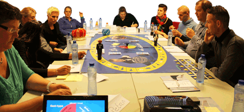 Onderdeel van de training is het bordspel "De koning & de butler" Dit spel geeft inzicht en de uitdaging om te experimenteren met klantgericht gedrag. "De koning & de butler" wordt qua inhoud en opdrachten afgestemd op de leervraag.